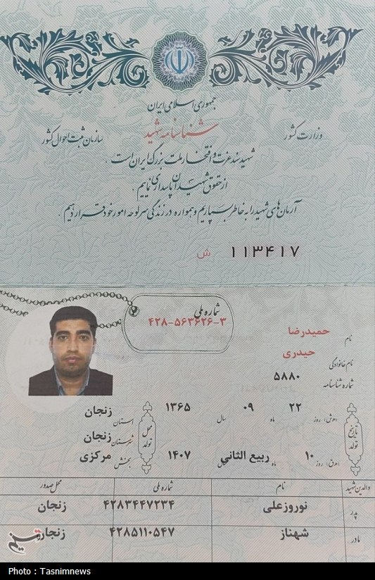 همزمان با برگزاری «یادواره آرامشآفرینان» و در راستای تکریم از سلحشوران دفاع مقدس استان زنجان، اداره کل ثبت احوال این استان با همکاری ستاد برگزاری یادواره، اقدام به صدور و تحویل شناسنامه به خانوادههای 13 شهید والامقام مربوط به «جنگ 12 روزه» کرد.